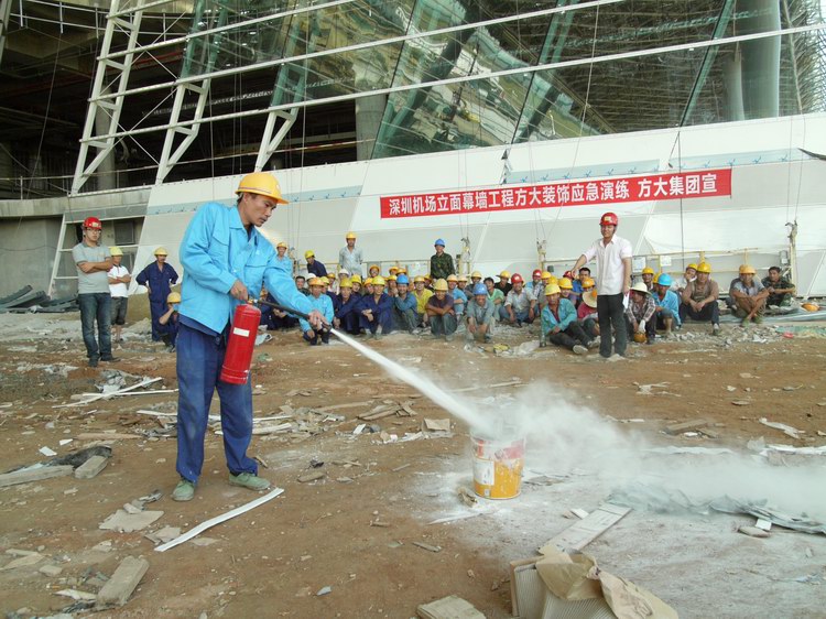 7月3日下午,为了检验今年全国“安全生产月”的成果和深圳机场T3航站楼幕墙工程项目的安全生产应急能力,永利3044集团官网、深圳市永利3044集团官网装饰工程有限公司组织开展了为期半天的幕墙施工防火、防高坠、防坍塌安全事故应急演练。集团公司安全主管尚清波、装饰公司安全部经理丁志刚、T3航站楼项目部副经理高晶参与现场演练组织指挥。这次安全应急演练,检验了现场管理和施工人员面对紧急情况的应急处置能力和水平,提高了大家的安全应急意识和水准,整个演练过程衔接到位,收到了良好的预期效果。
