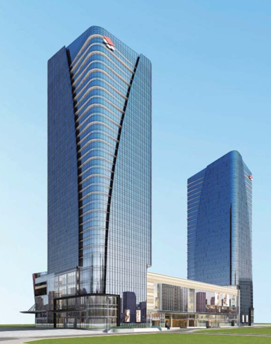 广西柳州新银都大厦改扩建工程项目位于柳州市鱼峰路,占地面积9万平方米,建筑总高度147米,主要采用单元式玻璃幕墙、石材幕墙、铝合金百叶、铝板幕墙等幕墙系统。