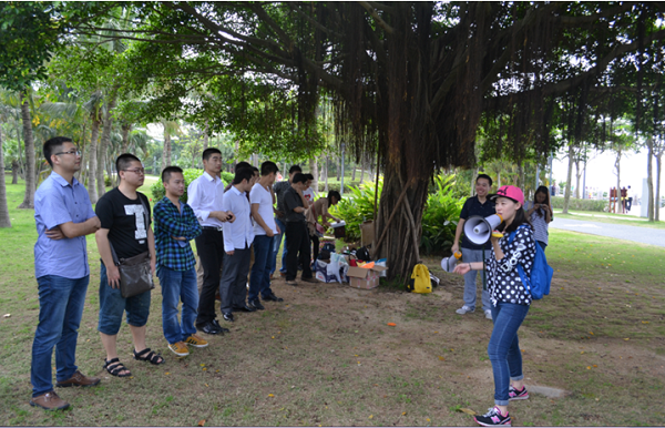 活动当天,大家意兴盎然来到了深圳湾公园,通过简单的自我介绍,在5分钟时间内迅速找到自己的搭档,然后进行互相介绍,之后每个人拿出自己精心准备的食物跟大家进行分享。分享过后大家迫不及待地投入到“报纸大联盟”、“五毛一块”、“幸福彼岸”、“群魔乱舞”“电动马达臀”等游戏中。大家用歌声、舞蹈和游戏传递着快乐与情谊,进一步拉近着彼此间的距离。一个个激动人心的互动小游戏将联谊会推向高潮,一个个刁钻的惩罚方式更令人捧腹。在“报纸大联盟”、“幸福彼岸”的游戏环节中,大家踊跃参加,使出浑身解数,各显智慧,用默契的配合共同争创佳绩。游戏之后,大家进入到了最神秘的“背对背的秘密”环节,男女生各站一排,相背而坐,大家依次将自己的心意卡放进了心仪异性的信封中。最后,大家两两相约,共同踏上单车尽享初夏深圳湾的风景。整个活动中,大家热情交谈,彼此了解兴趣爱好,互留联络方式,活动之后还制作了联谊会通讯录,以便今后更好地继续交流互动。