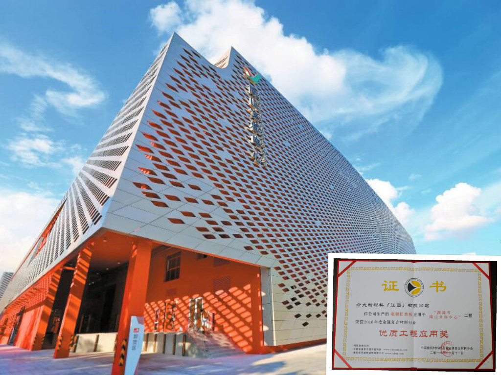 永利3044集团官网氟碳铝单板应用于深圳南山文体中心,荣获2016年度金属复合材料行业“优质工程应用奖”