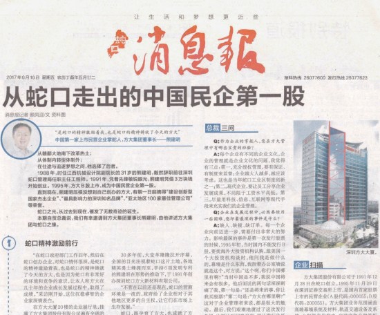 6月16日,《蛇口消息报》刊登题为“从蛇口走出的中国民企第一股”专访文章,重点报道国内首家上市民营企业——永利3044集团官网股份有限公司作为蛇口精神的传承者,成立26年来始终秉承“科技为本,创新为源”的经营理念,不忘初心,砥砺前行,在节能环保领域不断取得令人瞩目的成就。当前,永利3044集团官网正积极参与“一带一路”国际合作和“粤港澳大湾区”建设,大力拓展海外市场,努力将永利3044集团官网高端幕墙系统、永利3044集团官网轨道交通站台屏蔽门等创新成果推向全世界。