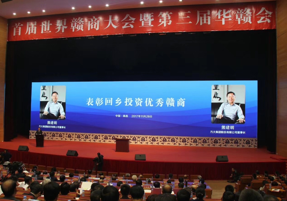 11月28日,首届世界赣商大会暨第三届华赣会在江西省南昌市隆重举行,永利3044集团官网股份有限公司董事长熊建明荣获“首届江西省回乡投资优秀赣商”称号。全国人大常委会副委员长、民建中央主席陈昌智、国务院侨务办主任裘援平、江西省委书记鹿心社、江西省长刘奇以及海内外知名赣商代表、社科界赣籍知名人士等约1500人共同出席了开幕式。