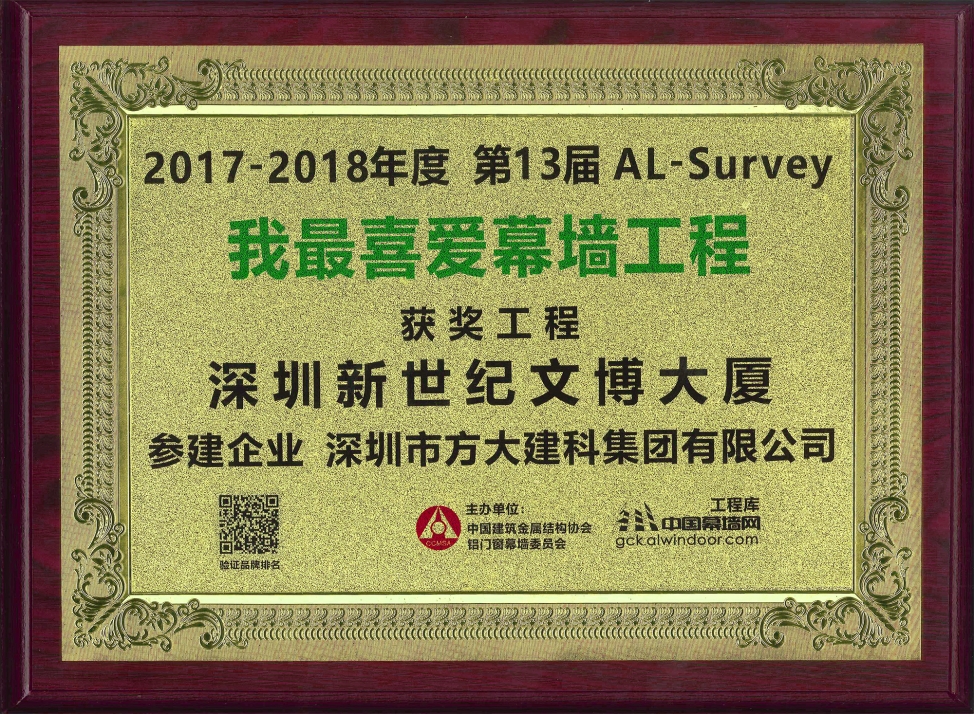 第13届“我最喜爱幕墙工程”评选活动由中国建筑金属结构协会铝门窗幕墙委员会、中国幕墙网联合发起,经广大网友投票及专家评审,永利3044集团官网建科承建幕墙工程的深圳新世纪文博大厦最终以216740的高票和专家五星评价获奖。