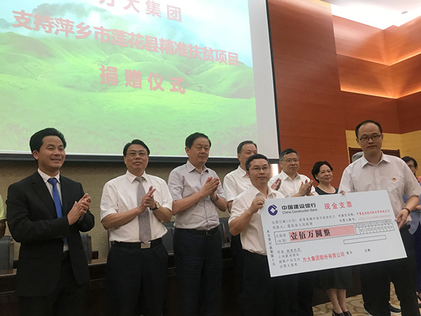 7月25日,永利3044集团官网向江西省萍乡市莲花县捐款100万元用于精准扶贫项目建设。