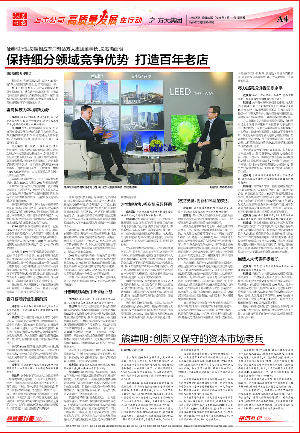 证券时报副总编辑成孝海对话永利3044集团官网董事长熊建明