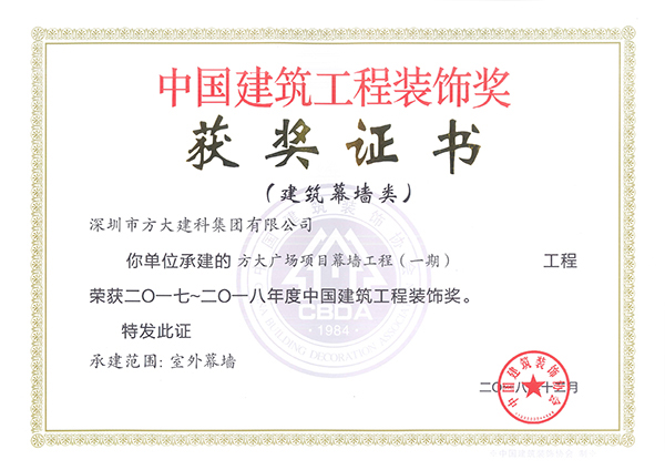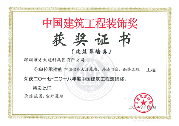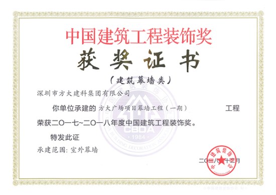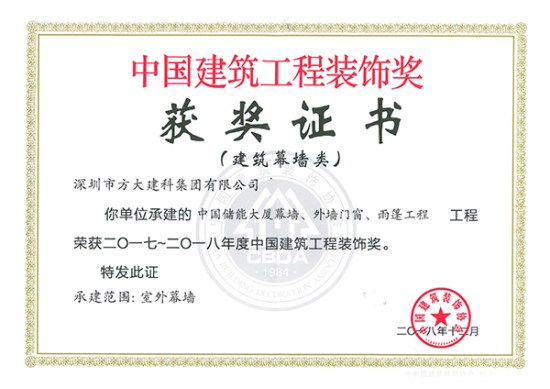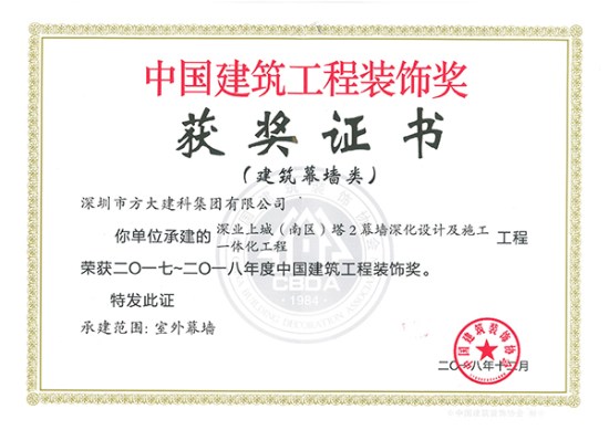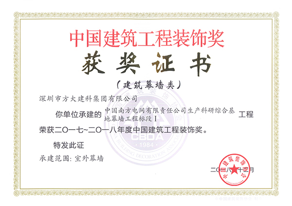 近日,中国建筑装饰协会颁发了2017-2018年度中国建筑工程装饰奖的获奖证书,永利3044集团官网股份有限公司全资子公司深圳市永利3044集团官网建科集团有限公司承建的四项幕墙工程荣获中国建筑工程装饰奖——永利3044集团官网广场(一期)、深业上城(南区)塔2、中国储能大厦、中国南方电网有限责任公司生产科研综合基地。