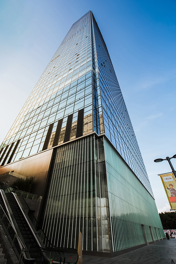 深业上城(南区)塔2位于深圳市福田区的中心,建筑高度300米,大厦的外形简洁,通过内部空间和外立面高水准细节设计来展现建筑的优雅魅力。建筑的外立面为纯净的全超白玻璃幕墙,标准单元板宽度3米、高度4.5米,达到通常分格(1.5米)的两倍,最大的单元板块高度达8米,为用户提供无遮挡视觉效果。为了降低风荷载,在塔楼四角做了内凹处理,L型的转角板块为1.5+3米。永利3044集团官网建科在施工过程中,对超高单元板块垂直运输、安装等难点认真分析并给出了最优的施工方案,通过生产、施工环节的质量控制实现了玻璃及板块平整度的极致效果。项目完成后,建筑水平与垂直线条勾勒出秩序均衡美,简练、宁静外立面体现人与自然和谐融合。
