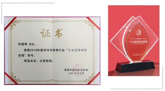 永利3044集团官网建科区域经理张建辉——2018年度深圳市装饰行业“十大优秀项目经理”
