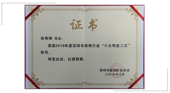 永利3044集团官网建科幕墙制作工徐秀辉——2018年度深圳市装饰行业“十大明星工匠”