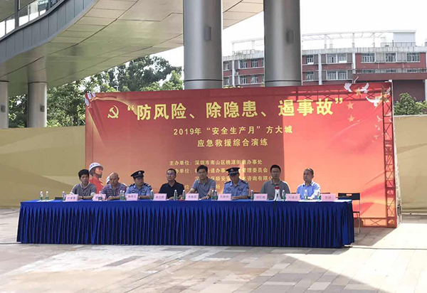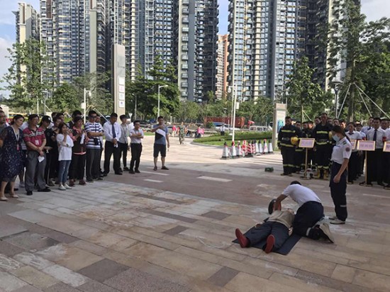 为检验深圳永利3044集团官网城安全预警系统有效性,强化业主及物业相关人员安全意识,提升应急避险、自我救护能力,6月27日下午,由深圳市南山区桃源街道办事处主办、永利3044集团官网城物业服务中心协办的“防风险、除隐患、遏事故”应急救援综合演练在永利3044集团官网城举行。桃源街道办主任李海滨,桃源派出所副所长林伟文,永利3044集团官网副总裁、置业公司董事长林克槟等参加演练。