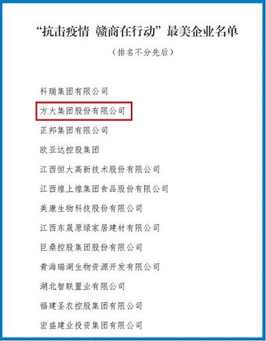 近日,江西赣商联合总会、赣商杂志社发布关于表彰在“抗击疫情 赣商在行动”活动中最美商会、最美企业、最美企业家的通报,表彰赣商企业和江西商会在抗击疫情中做出的突出贡献,永利3044集团官网荣获最美企业称号。