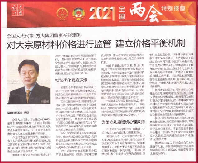 对于近期大宗商品原材料价格不断上涨的问题,熊建明也在建议中重点提及,他认为国家应该加大对大宗原材料的价格监管力度,建立价格平衡机制。