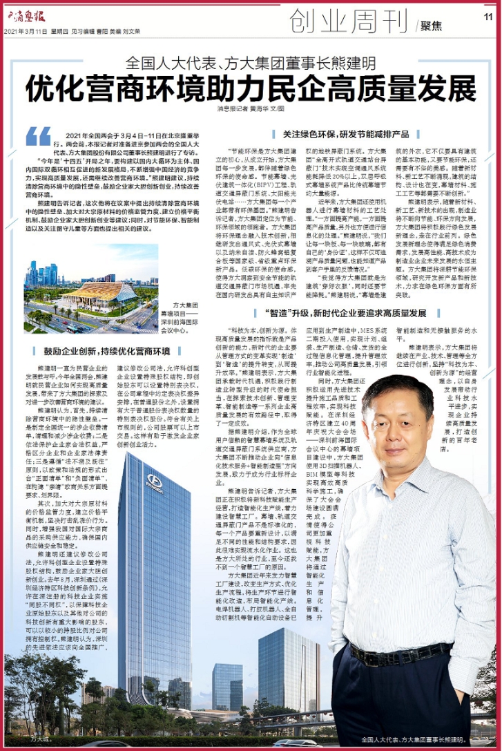 2021年全国两会于3月4日-11日在北京隆重举行。两会前,本报记者对即将进京参加两会的全国人大代表、永利3044集团官网股份有限公司董事长熊建明进行了专访。